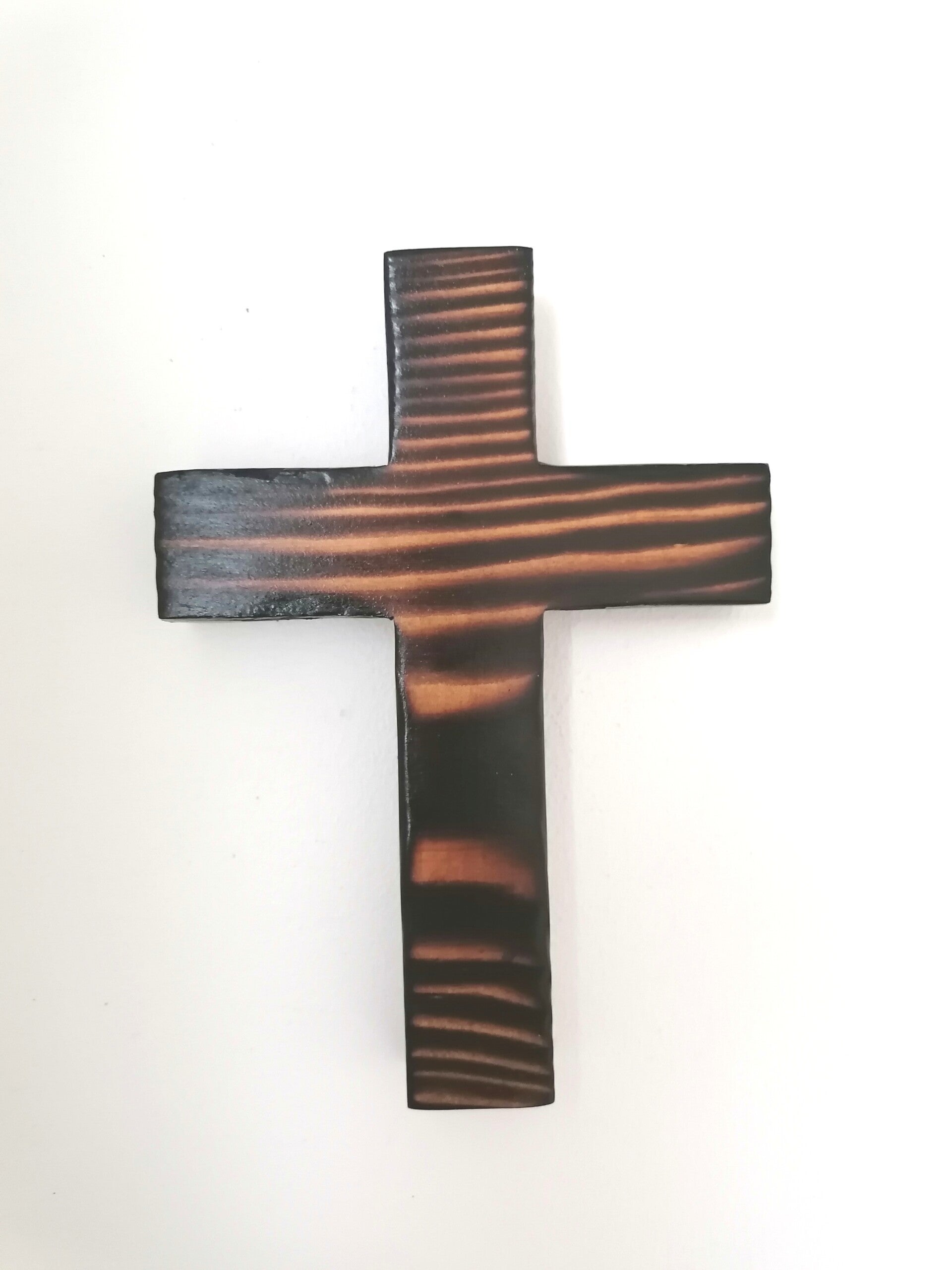 Crucifix réalisé à la main, façonné en bois de pin massif.