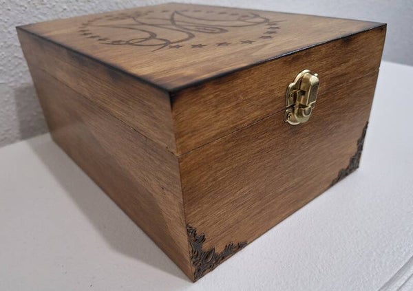 Boite en bois Monogramme Vierge Marie usage divers prières, objets religieux, photos rangement souvenirs ordination prêtre baptême communion