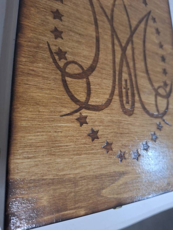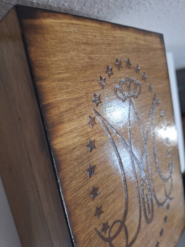 Boite de rangement gravée du Monogramme Marial de La Très Sainte Vierge Marie.