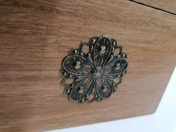 Coffret en bois Monogramme Vierge Marie usage divers rangement objets religieux, Chapelet souvenirs ordination prêtre baptême communion
