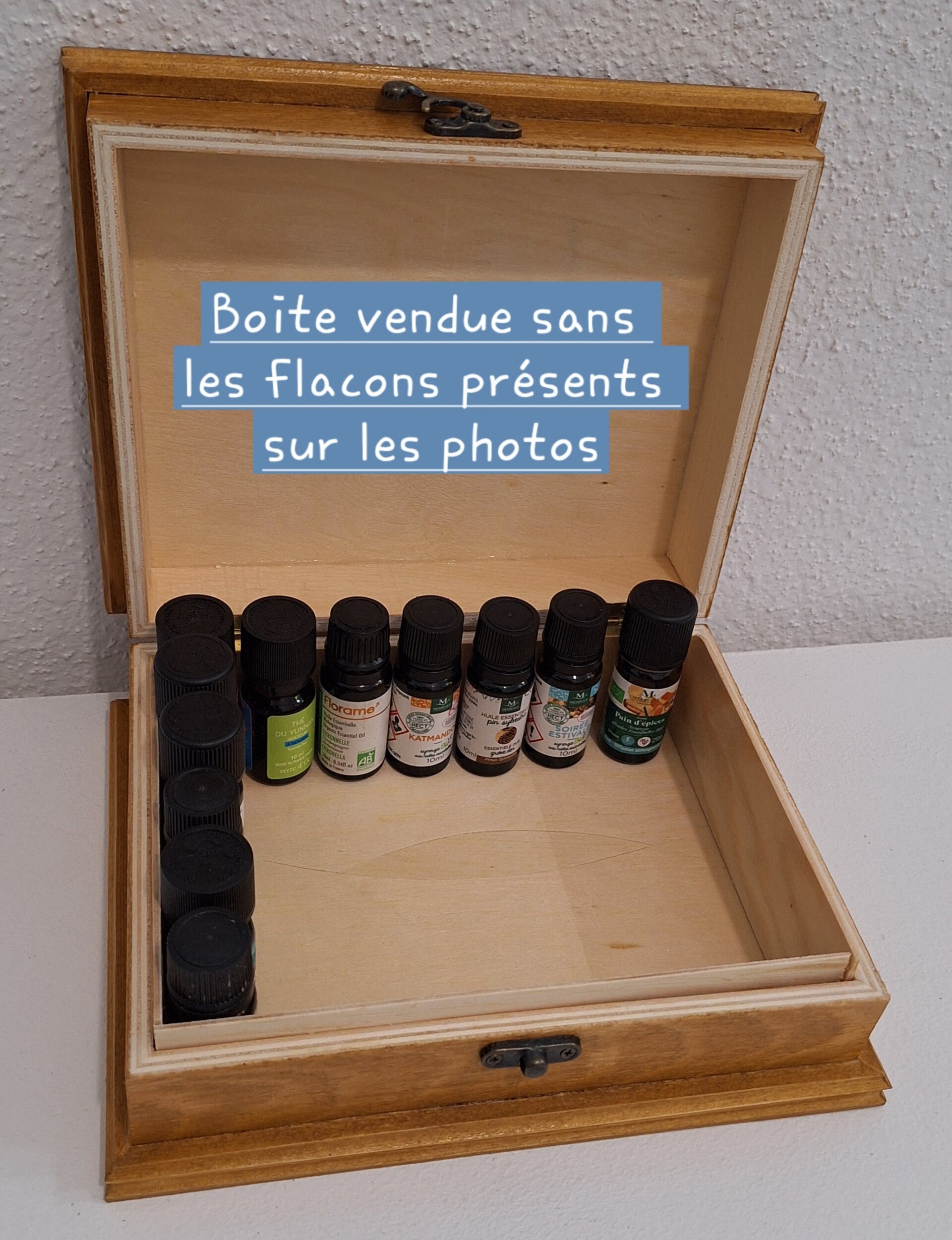 Les flacons figurants sur les photos ne sont pas vendus avec la boîte.