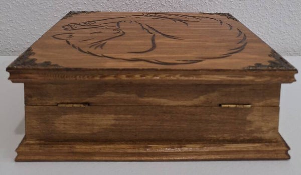 Urne funéraire en bois ou boite à souvenirs pour chat.