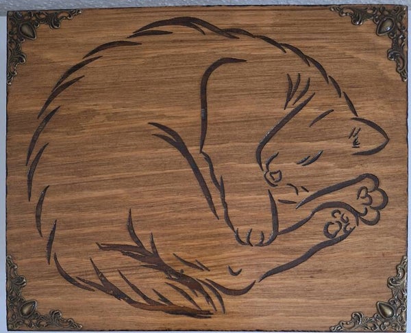 Urne funéraire en bois pour chat gravé d'un chat qui dort en boule ou coffret à souvenirs