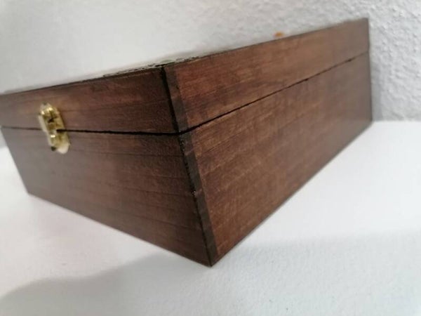 Boîte de rangement en bois de hêtre gravée d'une fée de la lune par mes soins.