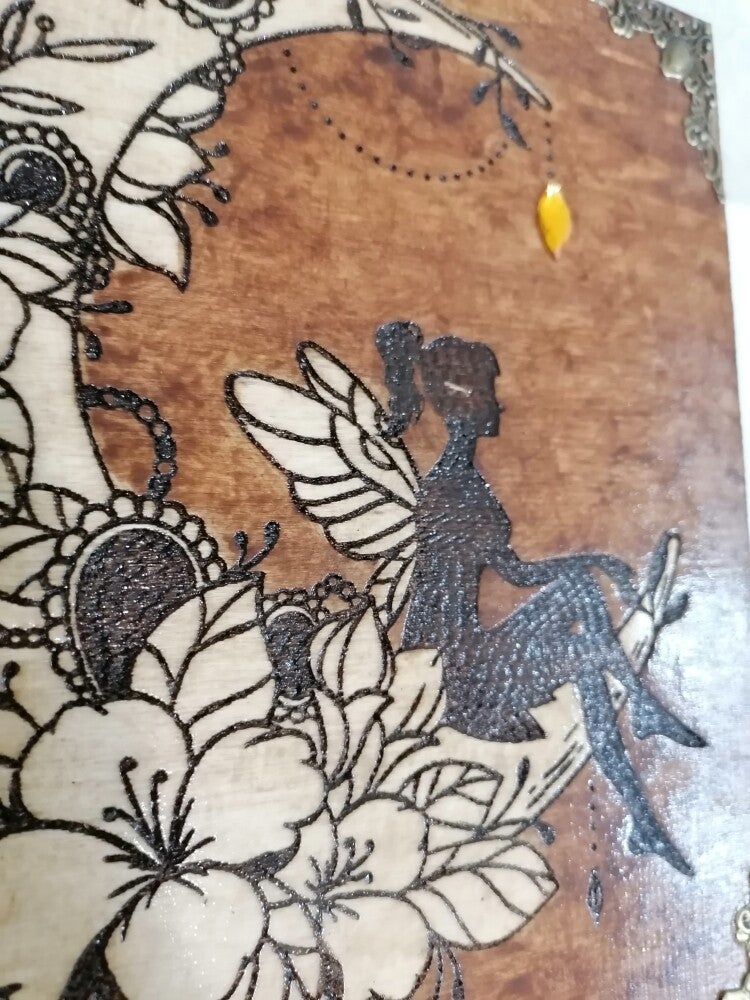 Boite gravée d'une fée de la lune type huiles essentielles, thé, bijoux pierres cristaux boite féérique