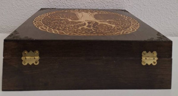 Grande boîte gravée d'un Arbre de vie celtique couronné boite à pierres et cristaux