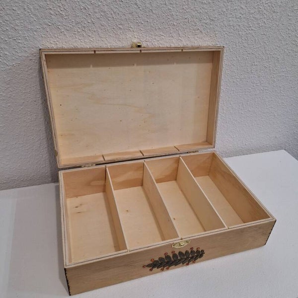 Grande boîte gravée d'une branche de feuilles d'érables pour une sublime décoration automnale
