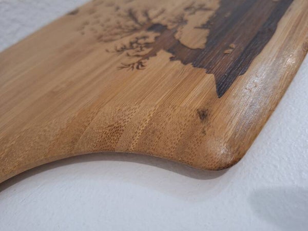 Planche de présentation en bois de bambou sur le thème d'Halloween.