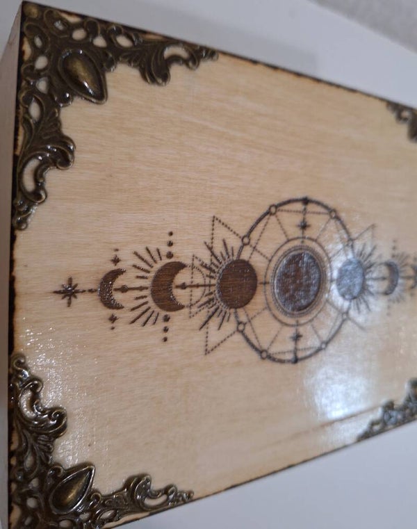 Coffret gravé des différentes phase lunaires ( thé, maquillage, couture, bijoux...)