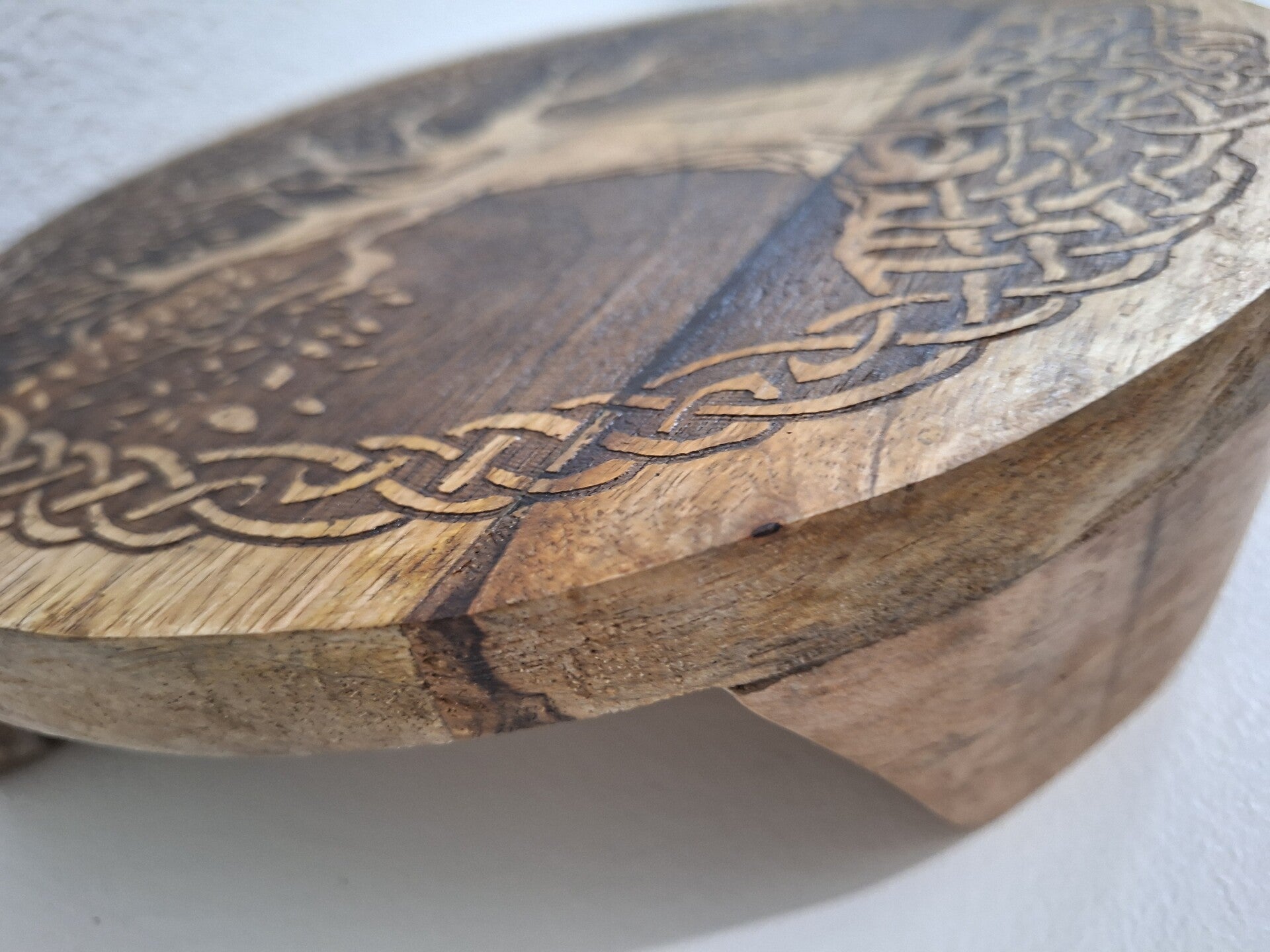 Plateau en bois de manguier gravé d'un Arbre de vie celtique magnifique décoration celte nature centre de table, support bougie présentation