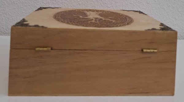 Boite à thé ou de rangement pour huiles essentielles gravée d'un arbre de vie celtique couronné