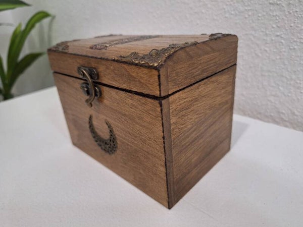 1 demi lune en métal bronze orne l'avant de la boîte.