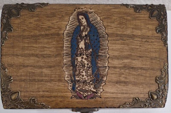 Coffret de rangement gravé de Notre Dame de Guagalupe Très Sainte Vierge Marie.