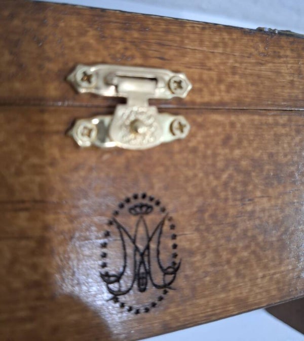 Lot 2 coffrets gravés Notre Dame de Guagalupe et Notre Dame de Fatima et monogramme de la Très Sainte Vierge Marie