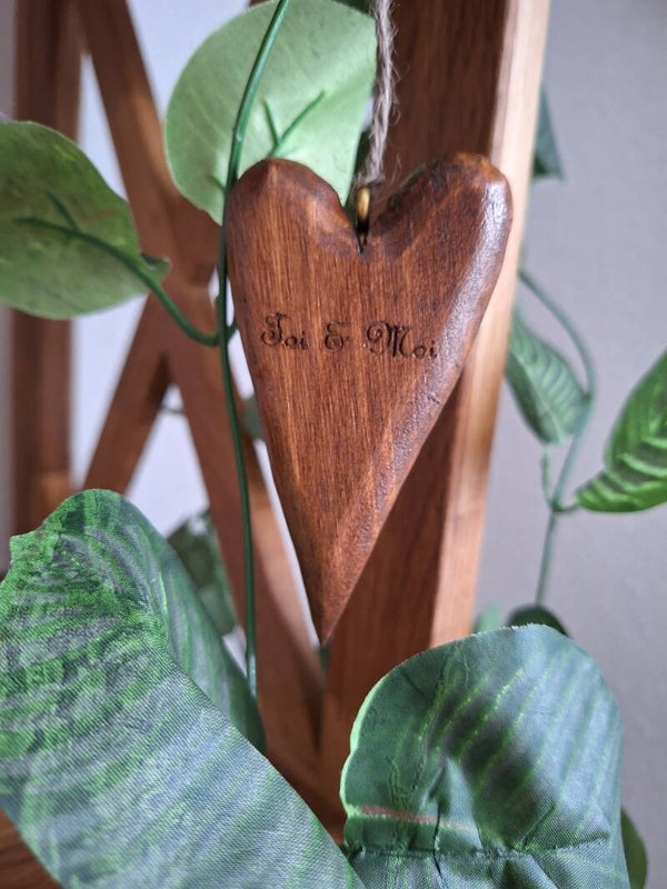 Suspension en bois en forme de cœur gravé Toi & Moi Cadeau pour amoureux