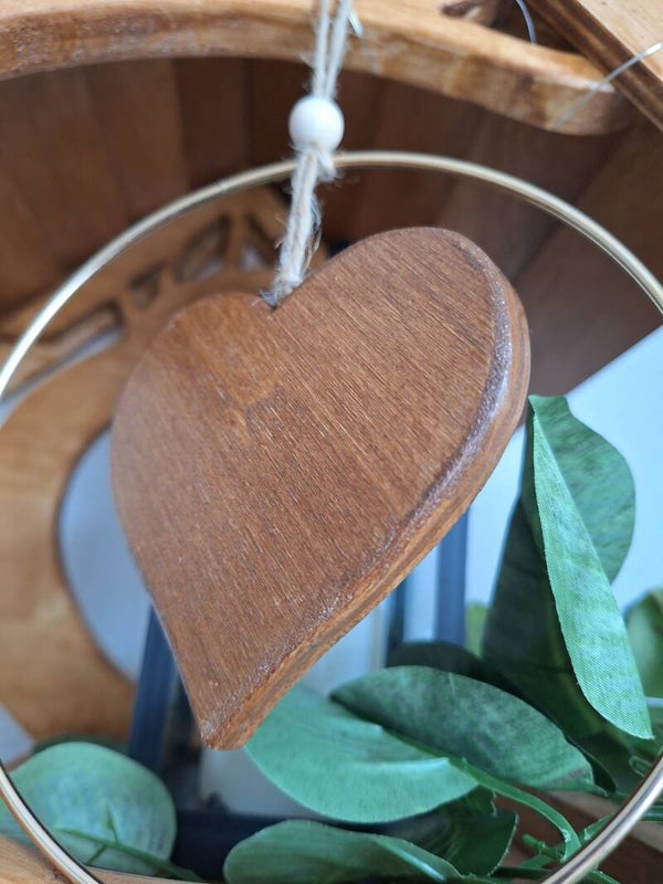 Suspension en bois en forme de cœur dans un cerceau doré à personnaliser