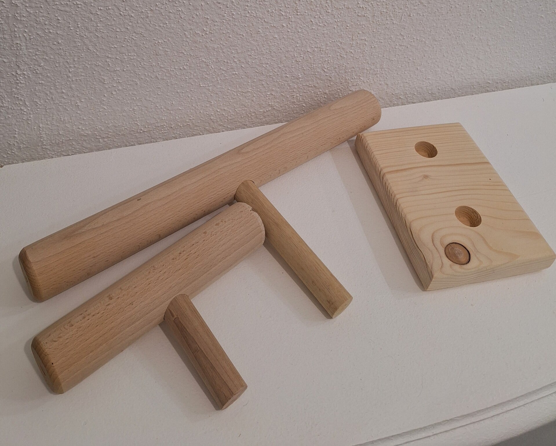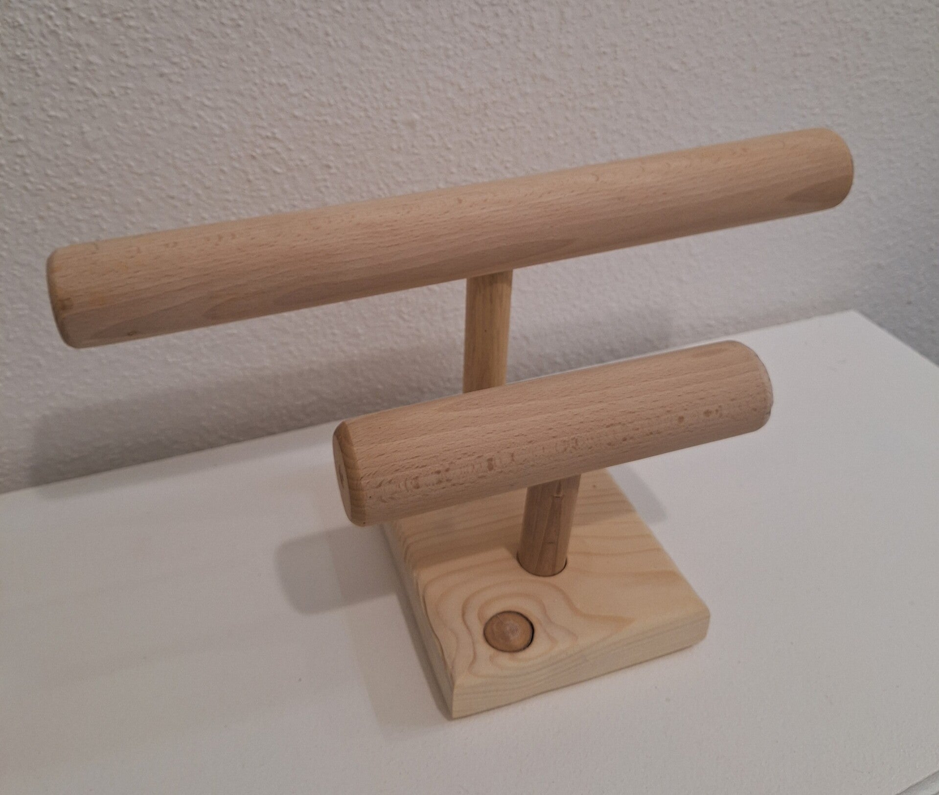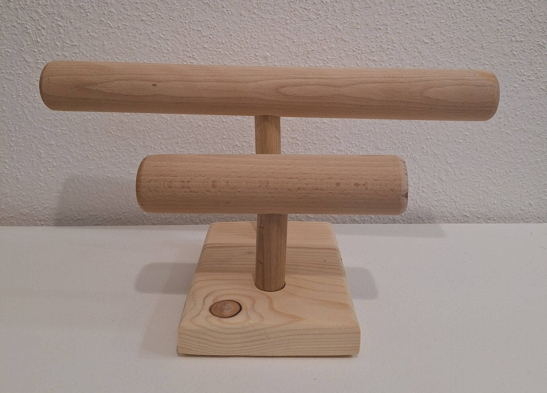 Présentoir à bijoux, bracelets et montre en bois de pin massif.