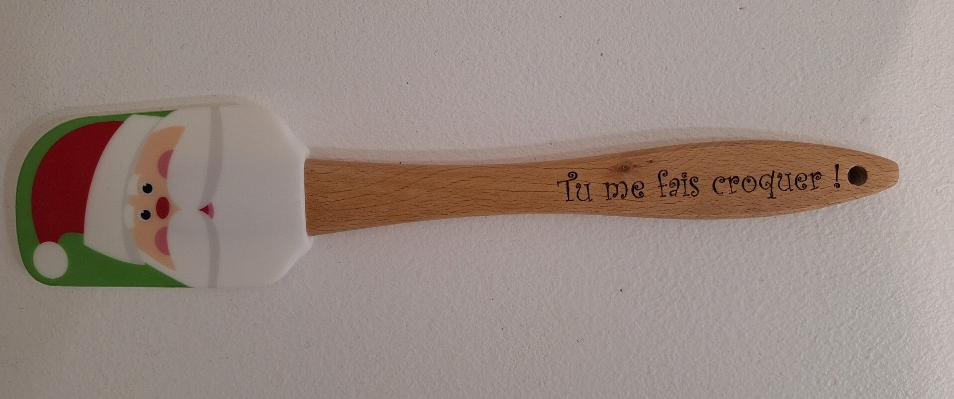 Spatule en bois et silicone gravée d'un message humoristique RF5
