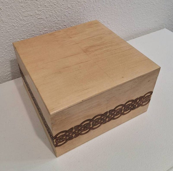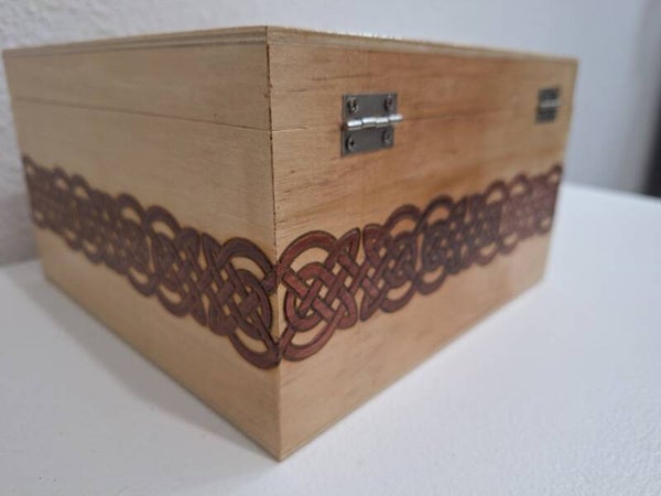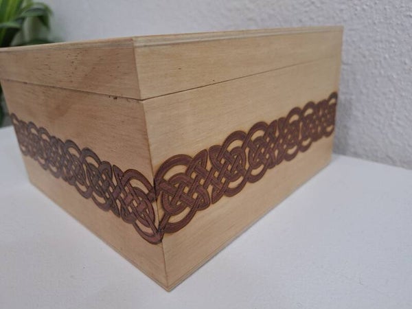 Boite coffret en bois clair gravée de noeuds celtiques décoration en bois celte
