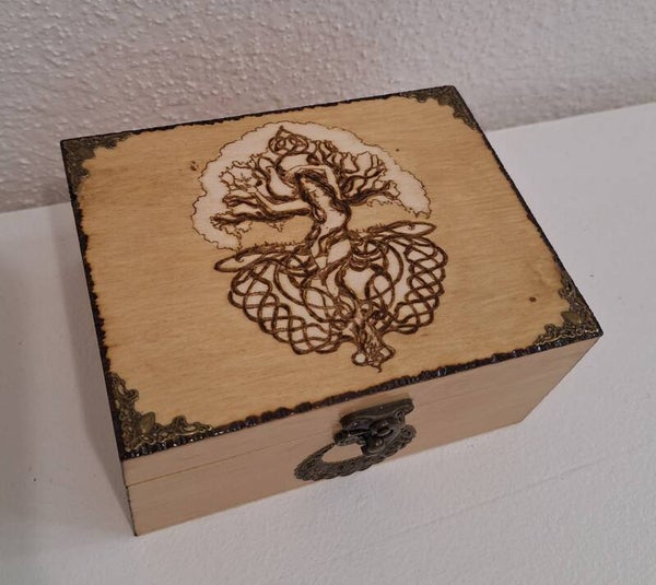 Coffret gravé de Ève entremêlée dans un arbre de vie Gravure biblique Première Femme au Jardin d'Eden