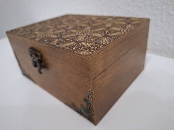 Coffret en bois motif médiéval gravure sculptée sur un thème Moyen-âge floral coffret de rangement divers
