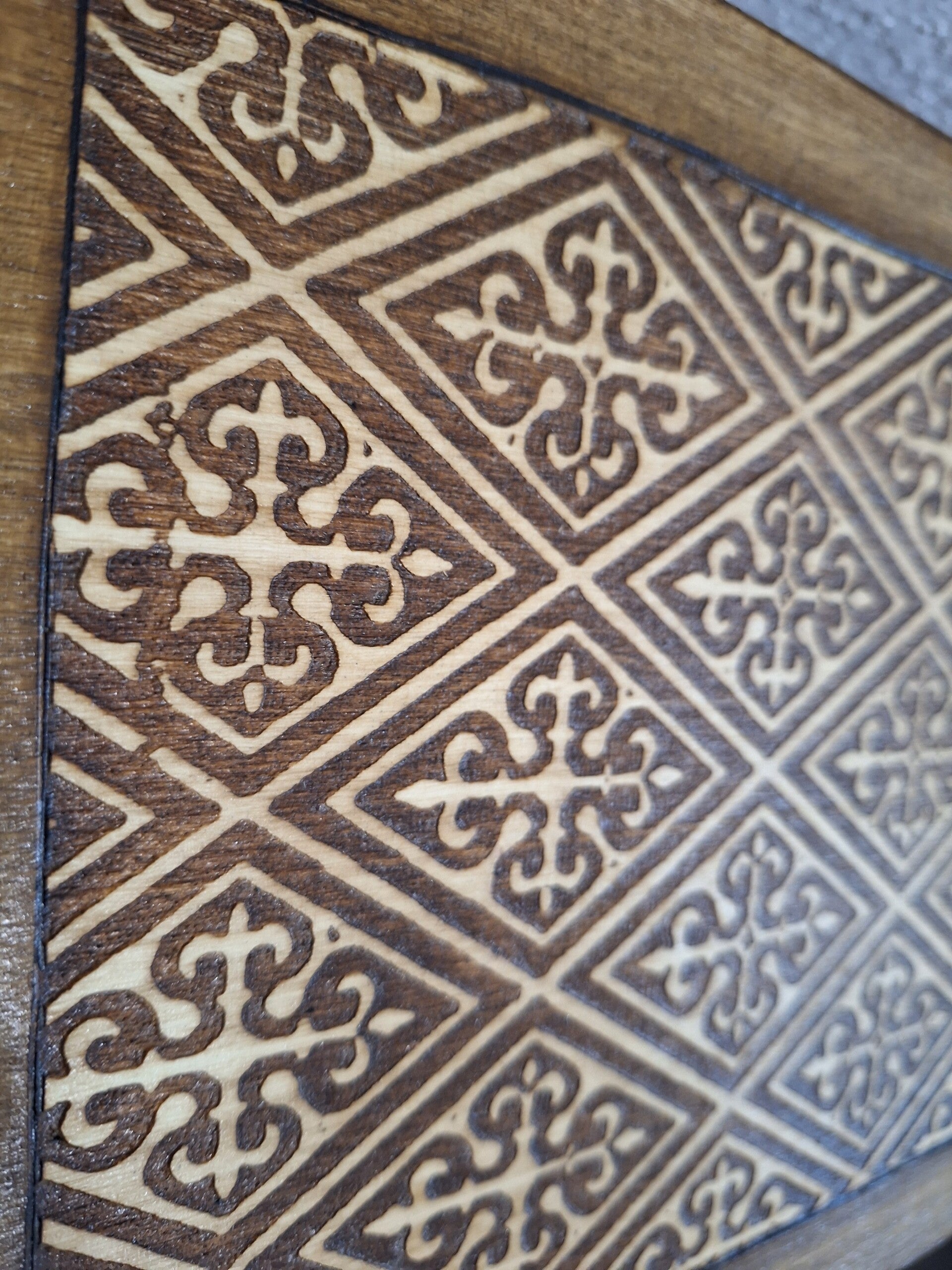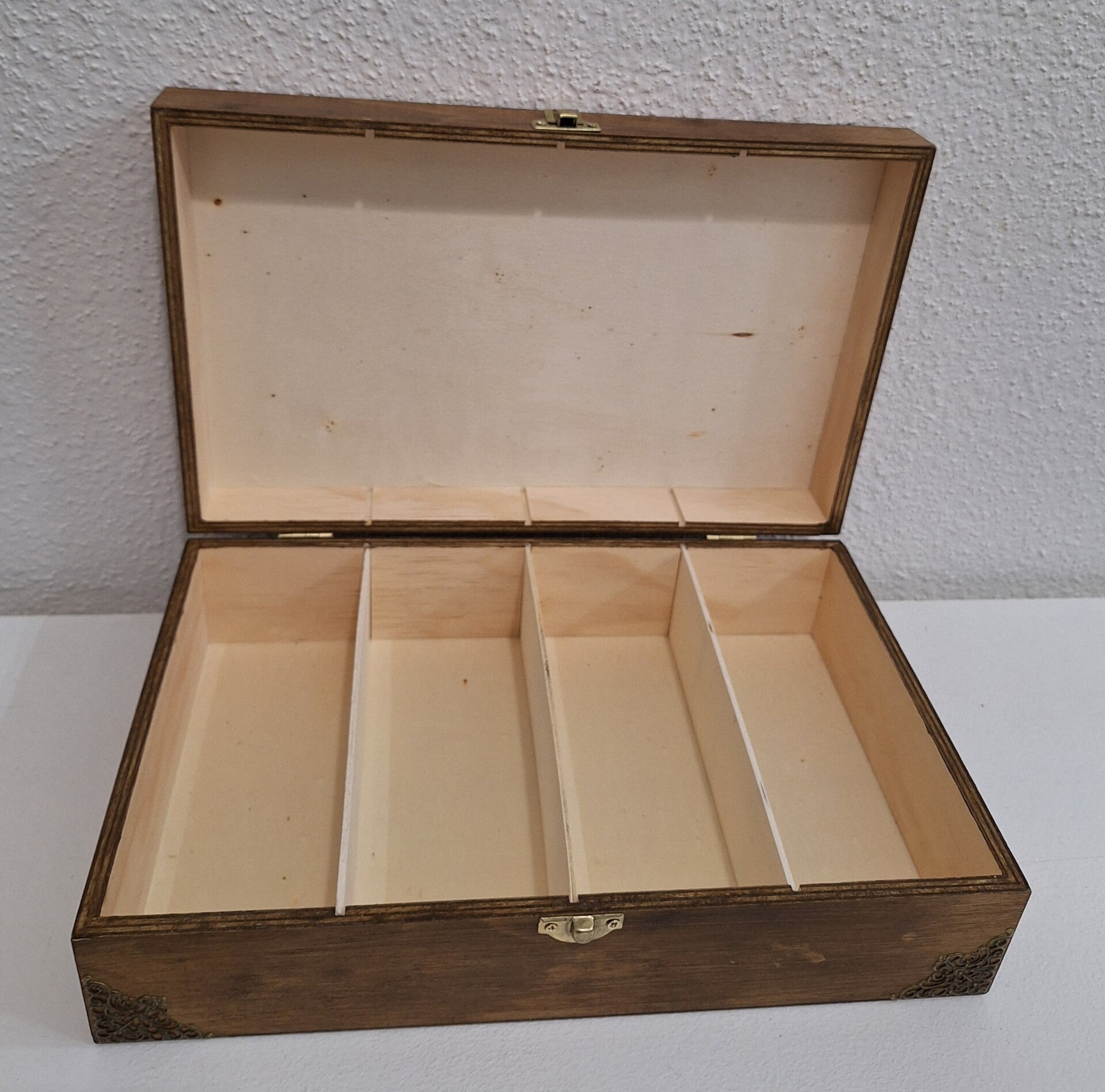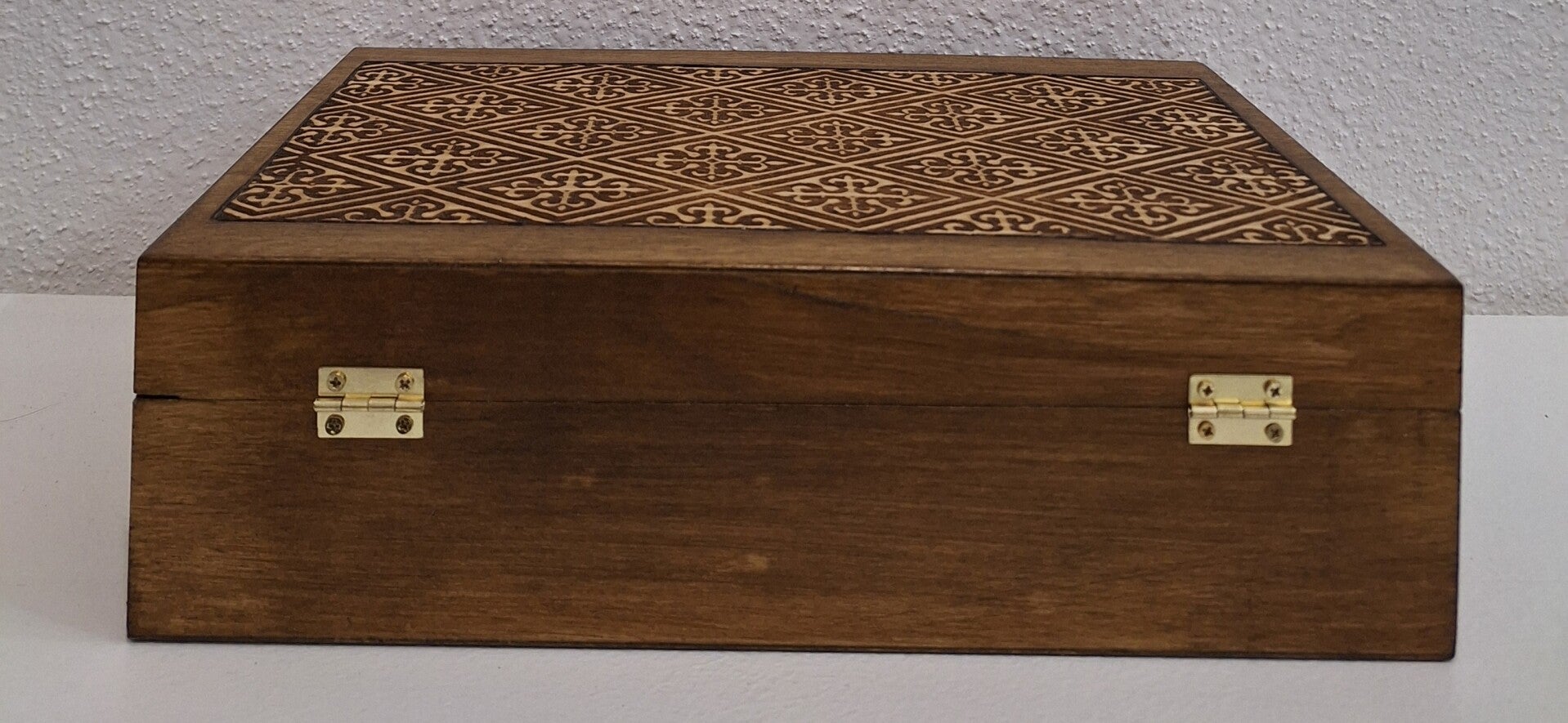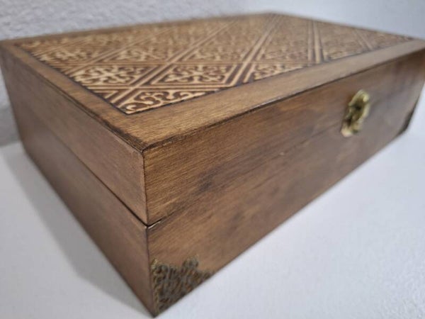 Grande boîte en bois motif médiéval par fleurs de lys gravure sculptée sur thème Moyen-âge