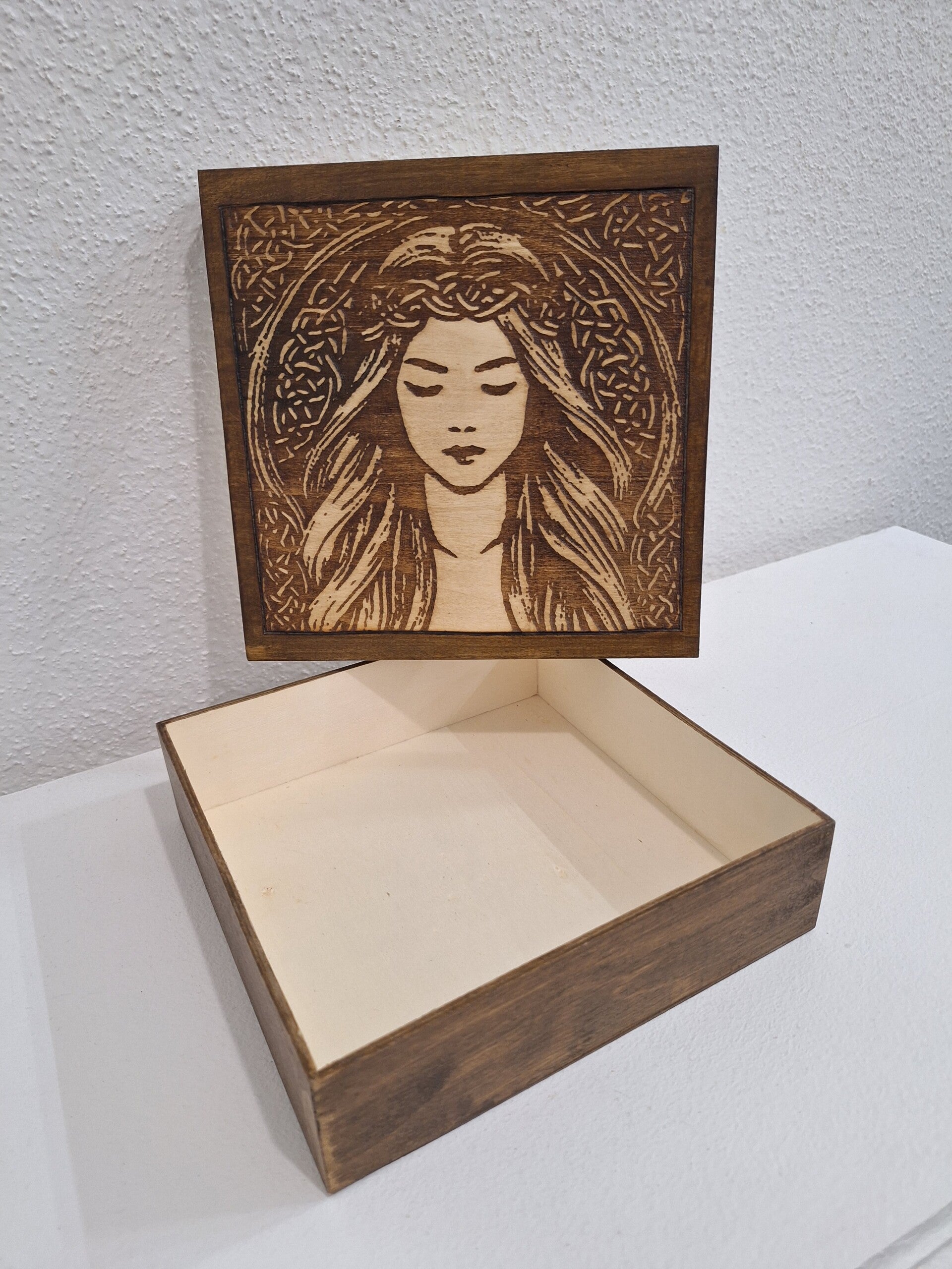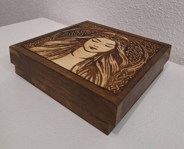 Boite à bijoux gravée d'une jeune femme celte Ederven / Ederwen coffret celtique original