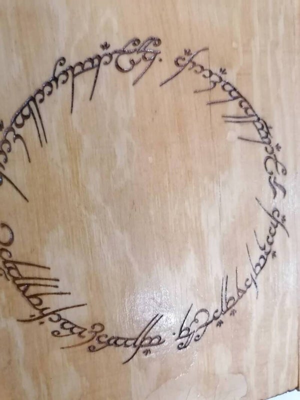 Gravure de Galathilion en recto et de l'anneau unique avec écriture elfe twengar en verso.