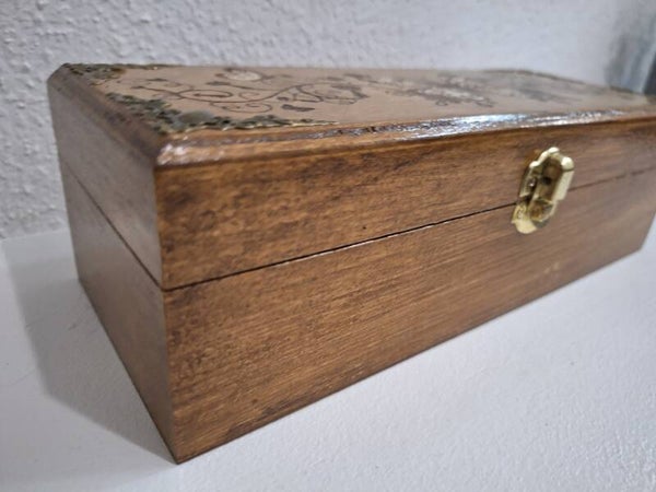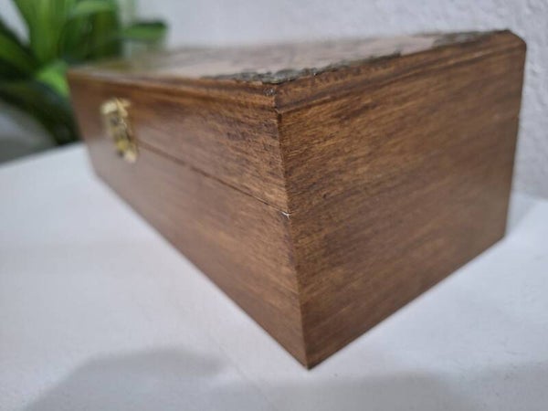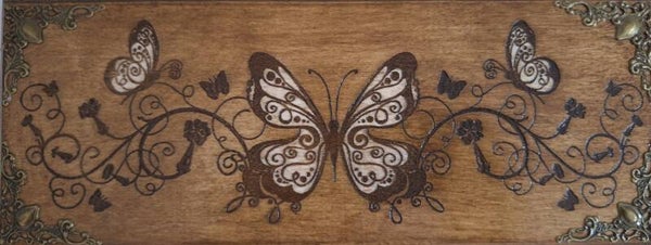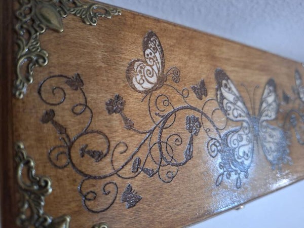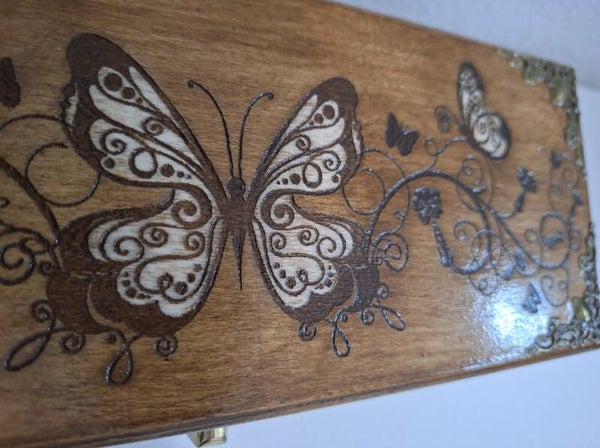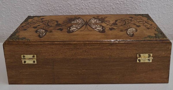 Boîte gravée de papillons et ornements bijoux pierres cristaux lithothérapie thé